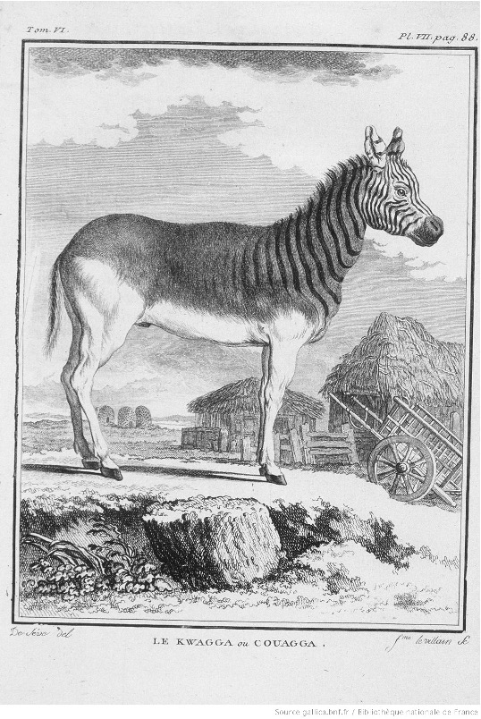 Au cours du XVIIIème et XIXème siècles, les gravures du quagga deviennent populaires notamment dans des ouvrages d’histoire naturelle, en voici quelques exemples :